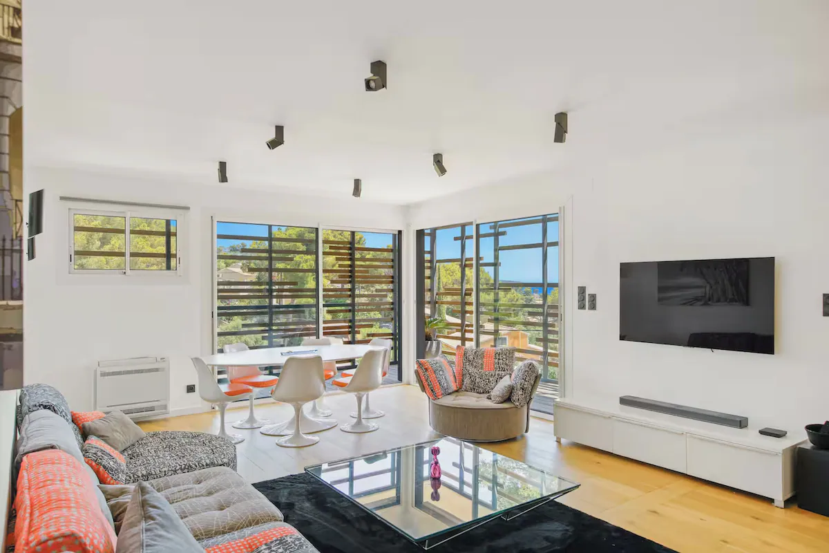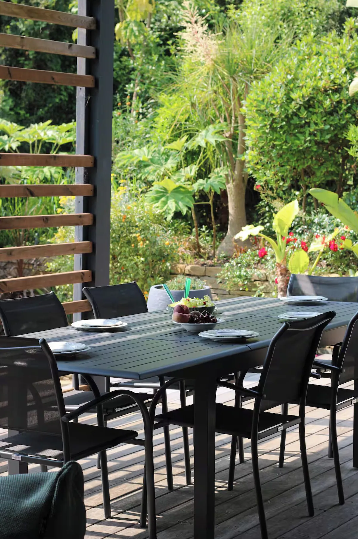 Baignée de lumière, la pièce de vie spacieuse s’ouvre largement sur l’extérieur et invite à des moments conviviaux en famille ou entre amis. La cuisine entièrement équipée permet de profiter pleinement du séjour en toute autonomie.